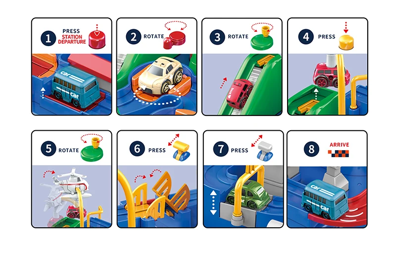 • Six Mechanical Challenges: Launcher, flip gates, 360° loop and magnetic trap teach sequencing—one toy game replaces multiple loose baby toys, reducing clutter.